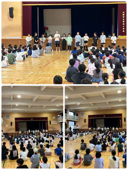 今日の児童集会は、まず代表委員会のお友だちから発表がありました。来週あいさつ週間があります。みんな元気よくあいさつしましょうね。