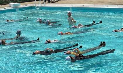 服を着ていたりくつをはいていたりしたときに、水の中ではどのように感じるのか、水難事故から身を安全に守るためにどのようにすればよいのかを学びました。