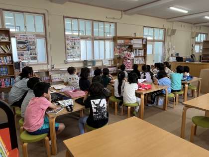 6/25.7/2の2日間、朝や図書の時間に、各クラスで課題図書を紹介してくれました。
