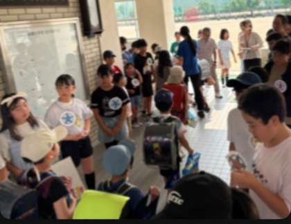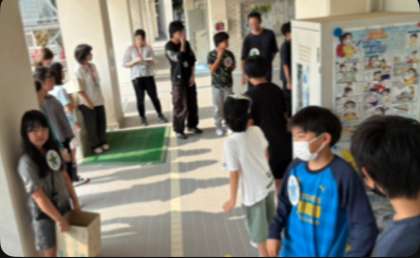 たくさんの子どもたちのがんばりで、今朝はあいさつの子どもたちの列が正門を入ってまがるろうかのところまで続いていました♪