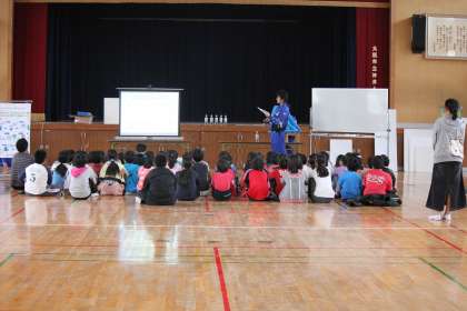 10月23日(水)2時間目と3時間目に講堂で、三ツ矢サイダーの出前授業がありました。
