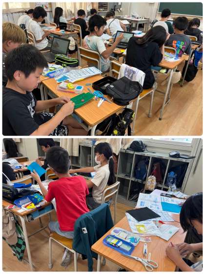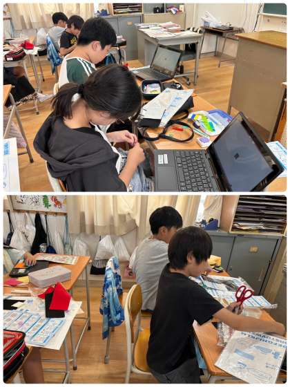 家庭科では練習布が終わり、一通りボタン付けや縫い方の練習などができるようになりました!それを生かして今は小物作りを始めました!小銭入れやペンケースを作っています。ボタン付けの仕方を忘れた人は動画を見返して自分でできるようになっていました。完成が楽しみですね!!!