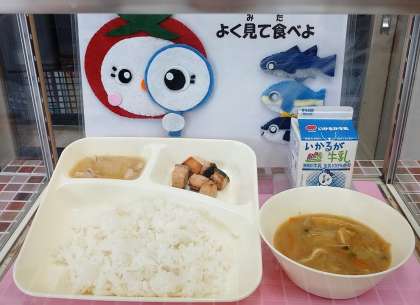 →給食では、煮ものやみそ汁、スープなどに使います。