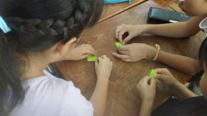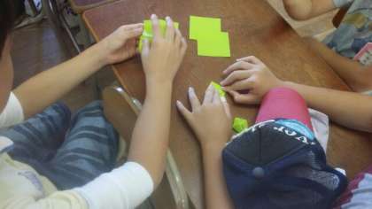 今日の児童集会は、たてわり班ごとに教室へ集まり、鶴を折りました。この取り組みは、今年で4回目となります。「平和への願いをこめて鶴を折ろう。」6年生を中心に、上級生が下級生に鶴の折り方を教えてあげます。