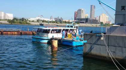 最初は日本一低い山、天保山に登山してから渡し船に乗りました。