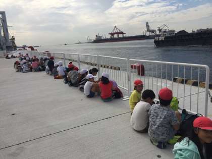見学の後は、大阪湾を見ながらみんなでおやつタイム!
