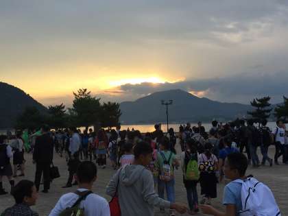 予定通り、無事に宮島へ到着しました。夕日がとても綺麗だったようです。