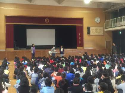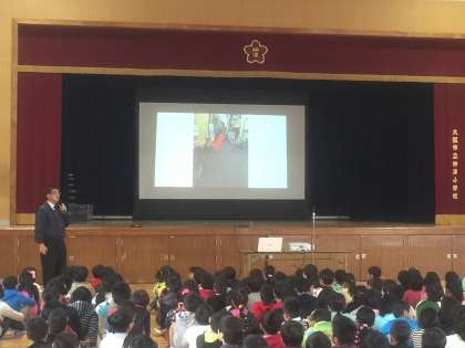 次に校長先生から交通安全のクイズを通して、安全についてのお話がありました。