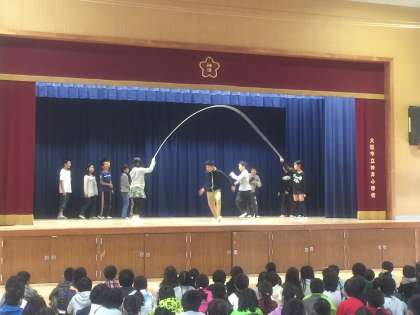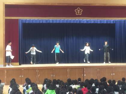 あやとびや交差とび、二重とびなどの一人技や、かかえこみとびなどの二人でできる技や、トラベラーや大なわとびなど多くの友だちとできる技を紹介してくれました。