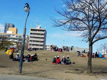 お天気がよかったので、近くの扇町公園でお弁当を食べてから帰校しました。