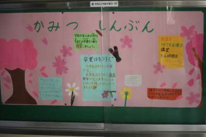 来る3月18日(火)の卒業式に向けて、少しずつお祝いの掲示物が増えていくかと思います。
