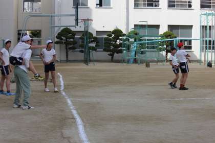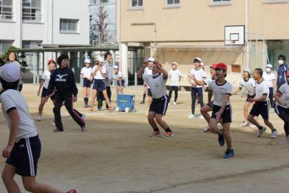 第1グラウンドでドッジボールとバスケットボールを、第2グラウンドでサッカーをして、気もちのよい汗をかきました。卒業生にとって、楽しい思い出の1つとなればいいですね。