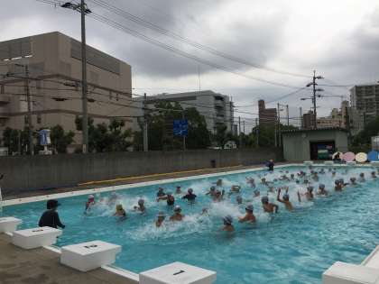 7月中はプール開放を行っています。たくさんの児童が元気に泳いでいます!