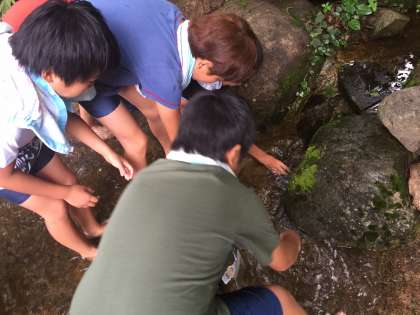 捕まえた魚は、みやま荘の方に塩焼きにしていただいて、美味しくいただきました!