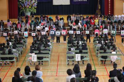 入学式では、新1年生が神津小学校の仲間入りをしました。