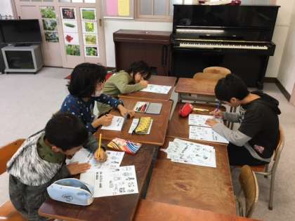 おいもパーティーの招待状を作りました。ひとりひとり気持ちをこめて書きました。当日の11月1日を、子どもたちはとても楽しみにしています。