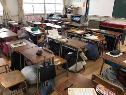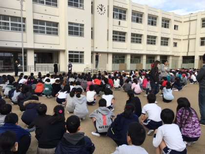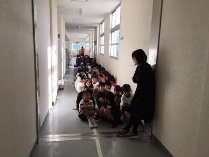 今日は、昨日実施でできなかった、「地震・津波」の避難訓練を行いました。まず、地震から身を守る行動を取り、運動場に避難しました。その後、津波から身を守るため、三階に避難しました。どの学年の児童も、しっかりと訓練に取り組むことができていました。