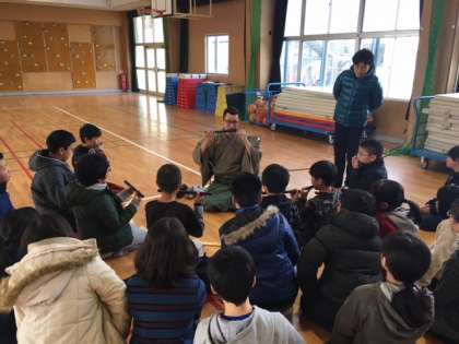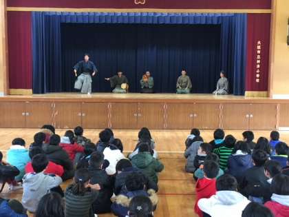 本日の5・6時間目に、能楽師の方々が神津小学校に来て、能について分かりやすく教えてくださいました。楽器体験の時間では、全員が「笛(能管)」「小鼓」「大鼓」を実際に演奏することができました。子どもたちにとって貴重な体験となりました。
