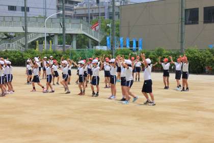 みんなの気持ちを一つにして、運動場を美しく回ります。