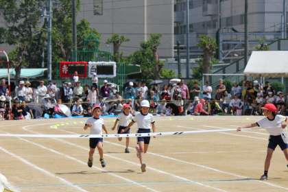 「全力で走れ60m」、昨年よりも上手にコーナーを曲がっていました。