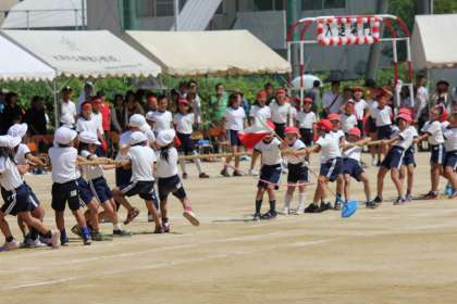 「力を合わせて〜つな引き〜」とても力のこもった勝負でした。この競技までに負けていた白組の追い上げが見られました。