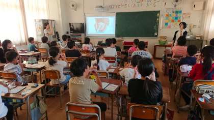 6月7日(木)に5年生は、全国小学生歯みがき大会に参加しました。この大会は、全国とアジアあわせて約21万人の小学生が参加しています。歯の汚れについてや、正しい歯みがきの仕方、歯肉炎について学びました。デンタルフロスの使い方も、学習しました。当日は、学校歯科医の渚先生にも来ていただき、歯ぐきをチェックしていただいたり、歯みがきの大切さについて教えていただきました。今回学んだことを、家庭やホームでも続けていただけたらと思います。