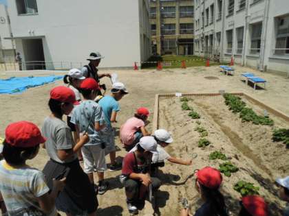 6月25日(月)に3・4年生で生き物さがしを行いました。3年生は3・4時間目に、4年生は5・6時間目に行いました。学校内を散策し、たくさんの生物を観察することができました。いつもは知らない植物や虫たちの名前や生態を講師の先生に教えてもらい、とても生き生きとした姿がみられました。