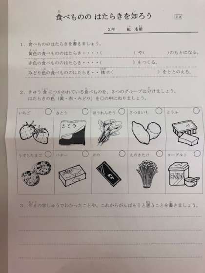田川小学校の天野栄養教諭に来ていただき、2年生の栄養指導の授業をしていただきました。