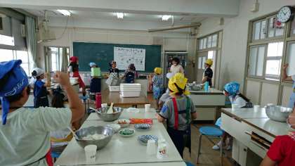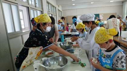 今回はみんなが楽しみにしていたおにぎりパーティーでした。「さけを入れよう」「ぼくはシーチキンマヨネーズを入れる」など思い思いの具をいれて楽しそうにおにぎりを作っていました。招待した先生に渡して、一緒に食べて、とても楽しい時間になりました。六年生の司会進行もとても立派でした。