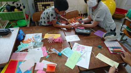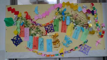 今回は、短冊に願い事を書いたり七夕飾りを折り紙で作ったりしました。みんな、思い思いの願い事を書いていました。そして早速廊下に飾っています。みんなの願い事がかないますように。