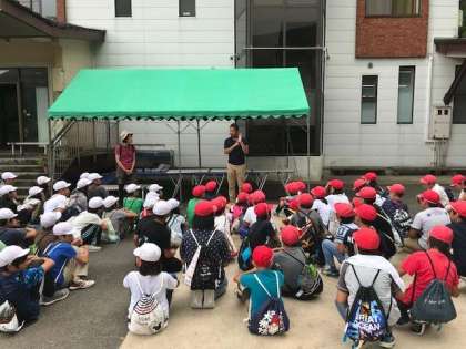 今から、飯ごう炊飯と焼き板作りをします。みやま荘の方の説明をしっかりと聞いています。美味しいカレーができるかな^_^