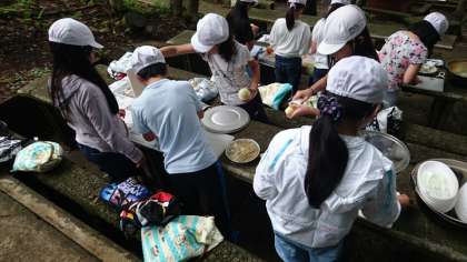 かまど係、カレー係、ご飯係にわかれて頑張って作っています。