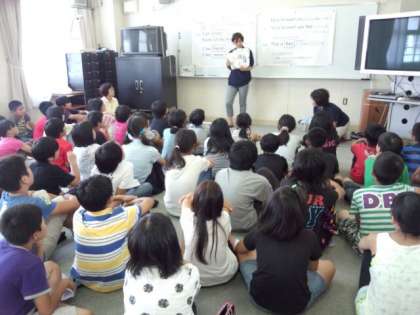 新北野中学校の英語の先生に来ていただき、学年合同で、英語の出前授業を行っていただきました。