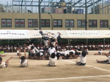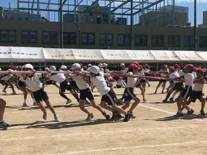 写真は4年生「棒引き」、5年生「ソーラン」、6年生「組体操」の様子です。さすが高学年!演技も競技も、頑張る姿から力強さが感じられます。