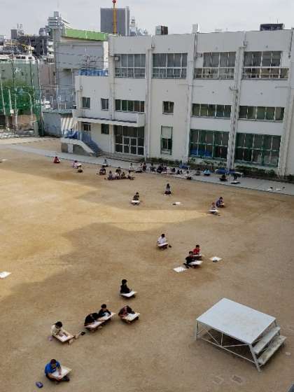 5年生は、明日10月16日(火曜日)に、写生会へ出かけます。中之島へ、大きな画板を持っていき、絵を描きます。ふだんは、画板を使って描くことはあまりしませんので、今日は画板を使って描く練習です。