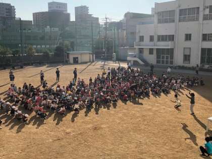 来週から始まる縄跳び週間に向けて、いろいろな技を紹介しました。