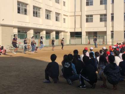 縄を止める技の「アームラップ」や「一人で跳ぶ「かけあしとび」「あやとび」「二重跳び」「はやぶさ」などを見事に披露してくれました。