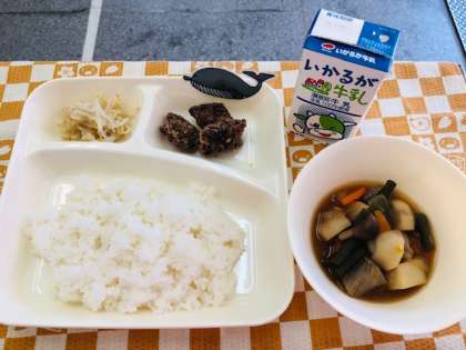 1年に一度登場する「くじら」を竜田揚げにしています。産地は南極海です。