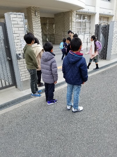 代表委員児童が、門のところであいさつを呼びかけてくれています。寒い冬は、あいさつの声から元気がなくなってしまいがちです。そうなってしまわぬよう、代表委員ががんばってくれています。
