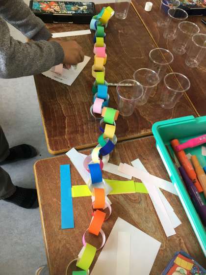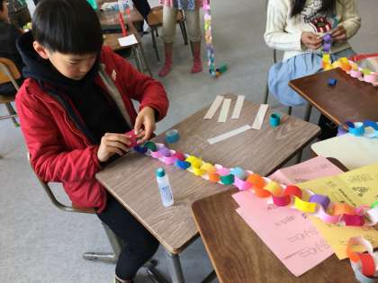 今日はなかよしパーティーの準備をしました。入れ物や、飾りを作りました。みんな、とても楽しみにしています。