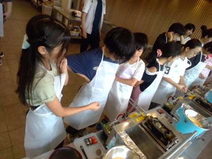 声を出しながら、もみじ焼き手焼き体験を進めています。