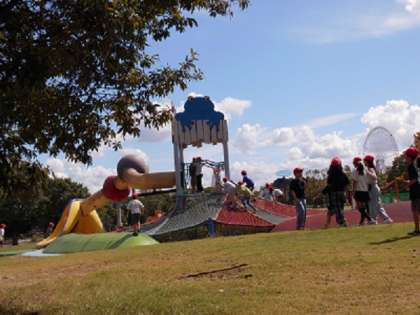 ソラードを歩いた後は、わくわく池の冒険広場で元気に遊びました。