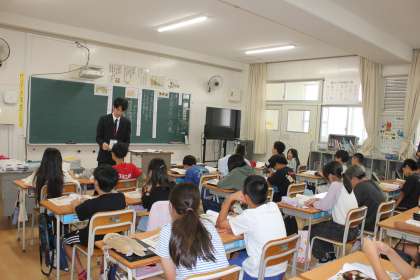 今日の道徳は、「名前のない手紙」という話でいじめを主題とした学習でした。教育実習生の研究授業でした。児童は始める前から「先生がんばって!」と応援し、やる気に満ちあふれていました。