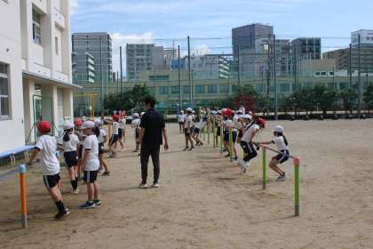 跳び箱の学習が終わり、10月からは鉄棒と走り幅跳びです。