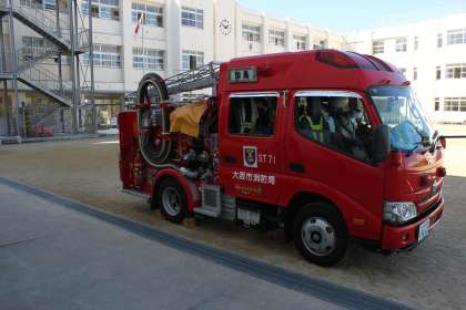 消防車の見学も予定していたのですが、区内で火災が発生したため学校から出動されました。「何よりも人命優先!」と説明があったので、子どもたちも納得していました。