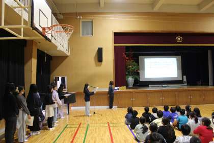 最後に、健康委員会の児童から『生活ふりかえり週間』の報告がありました。
