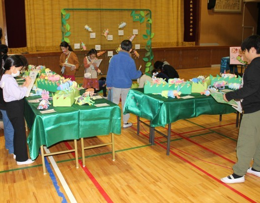 作品に用いられている技法や彩色、素材の使い方など様々な観点で鑑賞カードに記入しました。