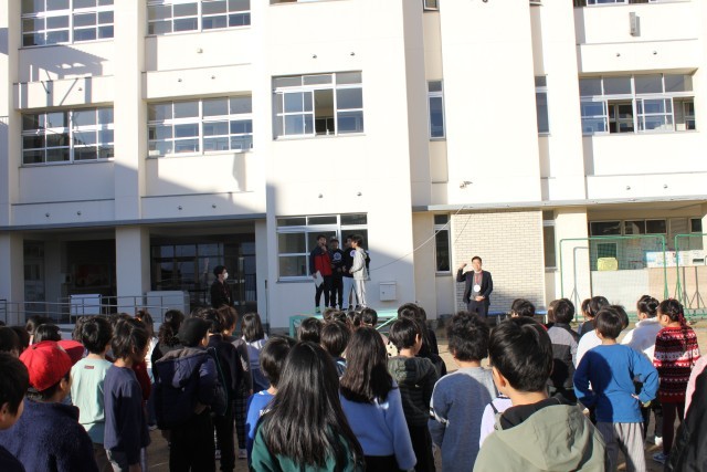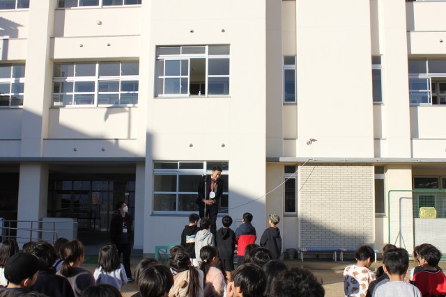 その後、あいさつレンジャーの児童からみんなに『これからも、あいさつをがんばろう!』と、よびかけがありました!