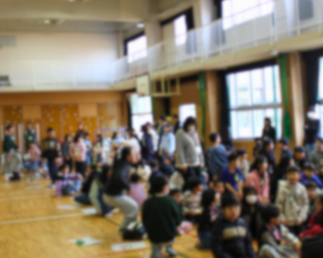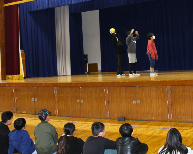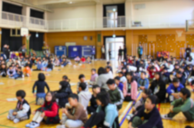 今日の児童集会は講堂で「ボールまわしゲーム」をしました。