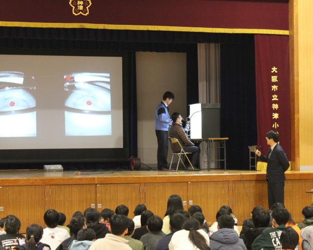 睡眠の大切さや、光による目の瞳孔(どうこう)のちがいなどを、パワーポイントの資料や実際の体験を通して、学ぶことができました♪